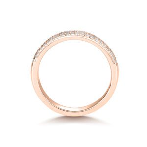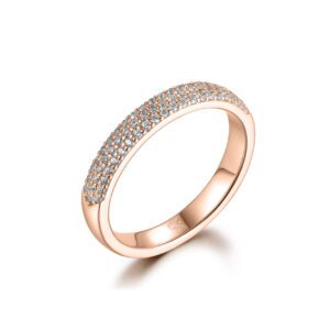 Den romantiska rosa nyansen av rosaguldsmycken skapas genom att använda en kopparlegering. Ju mer koppar i legeringen, desto mer rosa blir nyansen. Rose guld har samma mängd rent guld som gult eller vitt guld. Vad som är annorlunda är förhållandet mellan andra metaller som utgör den återstående procentsatsen av legeringsblandningen. Rosaguld är ett vackert och unikt val för förlovningsringar, och dess moderna vintage har varit en het trend under de senaste åren.