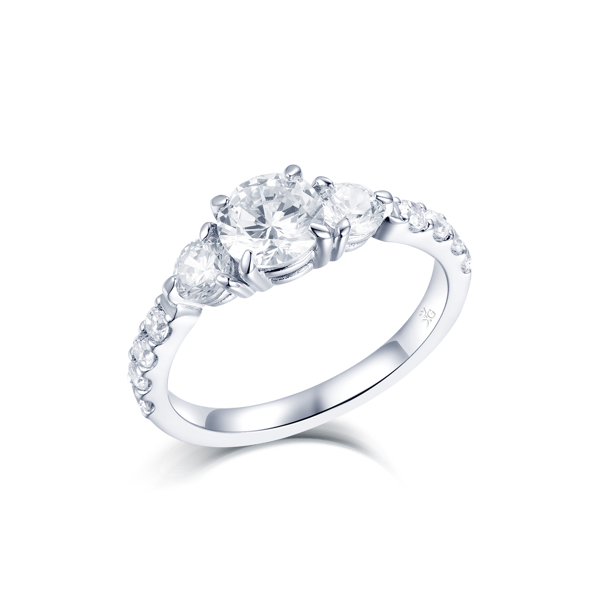 En east-west-fattning placerar centerdiamanten horisontellt över ringskenan istället för det traditionella. Det gör ringen unik, särskilt med avlånga slipningar som oval, marquise och emerald.