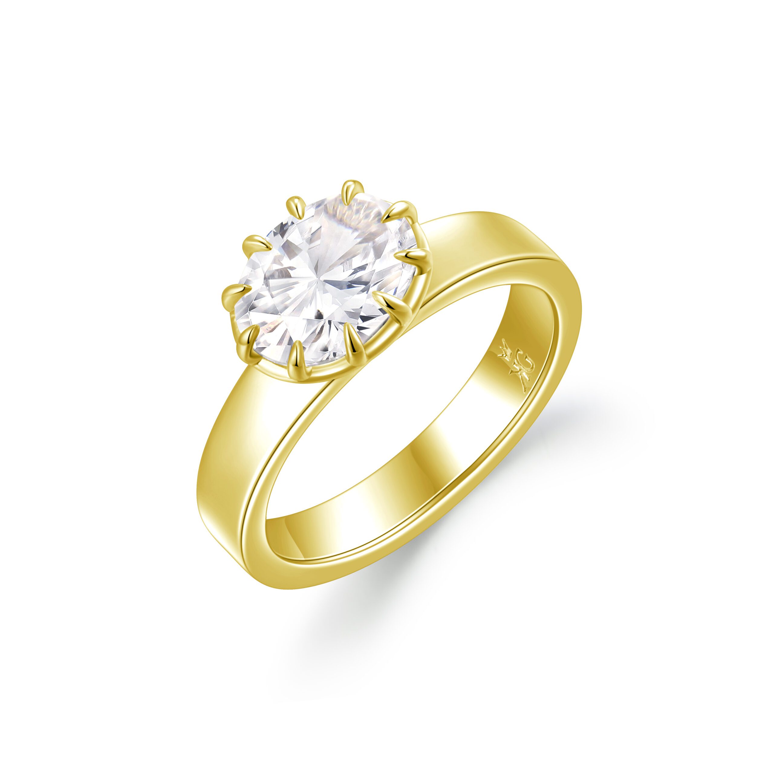 Varje ring är handgjord med precision och känsla för form. Den enkla silhuetten gör att stenen får andas, samtidigt som materialet – vitt guld, roséguld eller platina – ger ett mjukt sken mot huden.