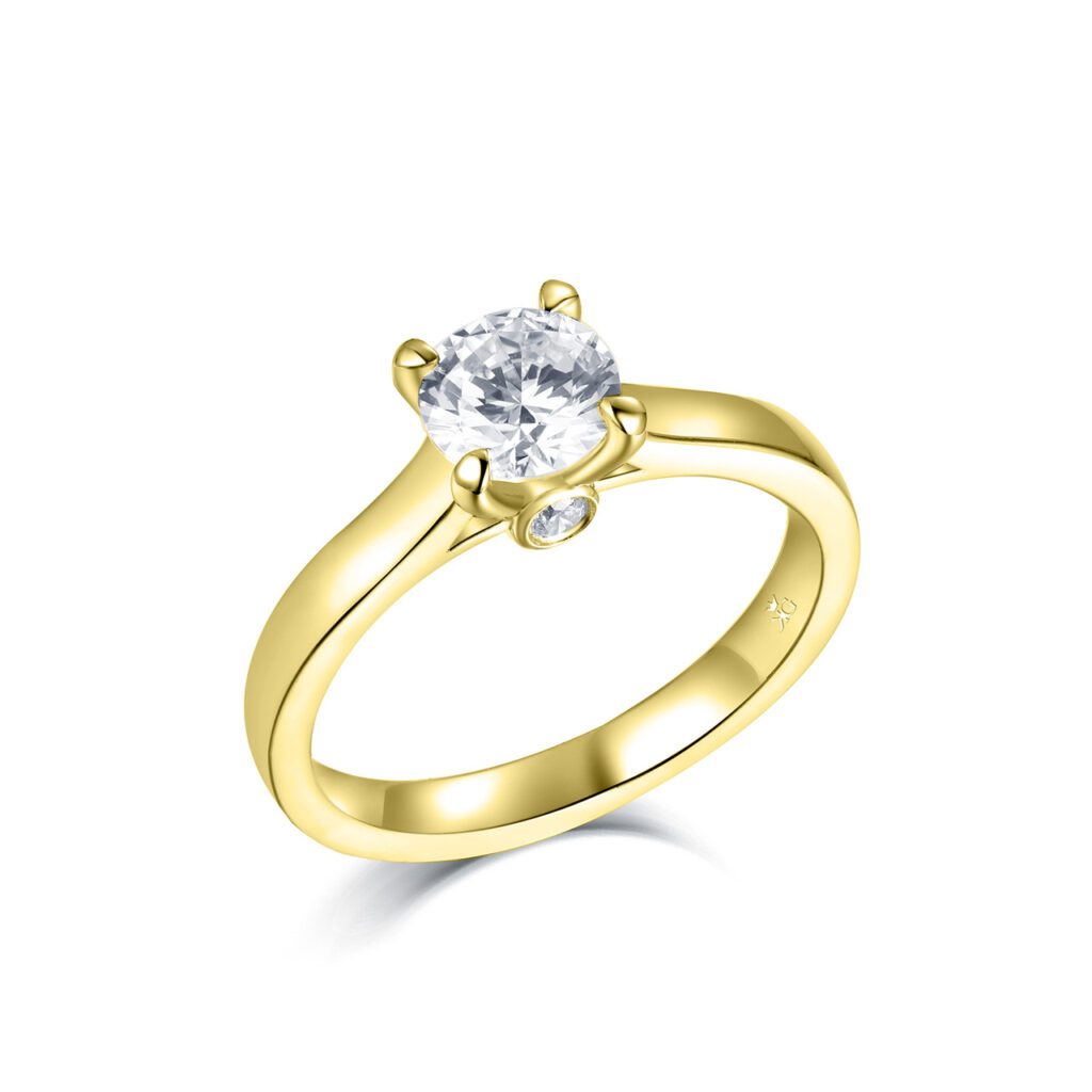 Solitärringar kommer i olika former – smala, breda eller massiva. Alice är ringen för dig som gillar en ring som är lite bredare och mer robust men ändå stilrent helhets utseende. Alice har fyra massiva klor som omsluter diamanten samt en diamant på vardera sida på boetten. Alice är vacker att kombinera med en smalare alliansring såsom den är lika vacker att kombinera bredvid en massivare slät ring.