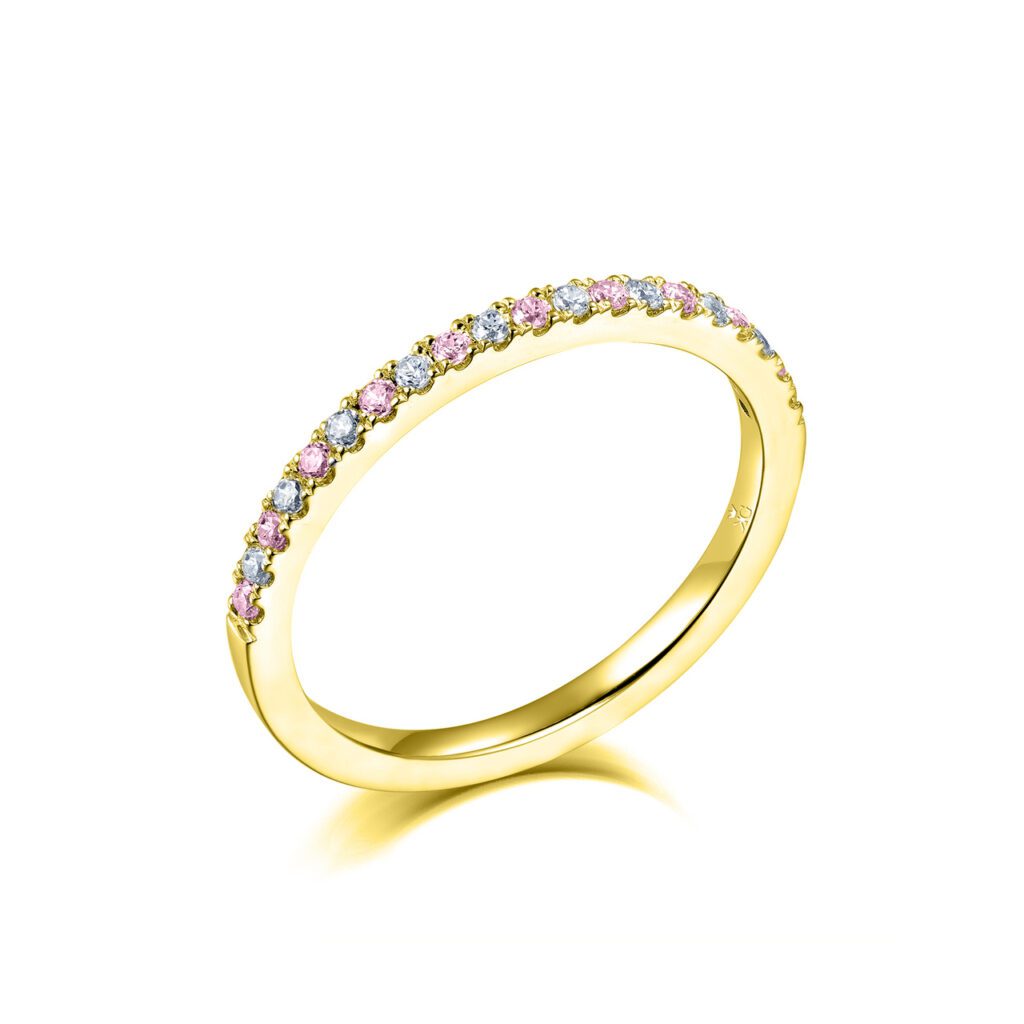 Alicia finns i fyra olika bredder – 1.5 mm, 2 mm, 2.5 mm samt 3 mm. Diamanterna och rosa safirerna är större ju bredare ring som väljs. Nedan specificerar vi mer information om varje ring