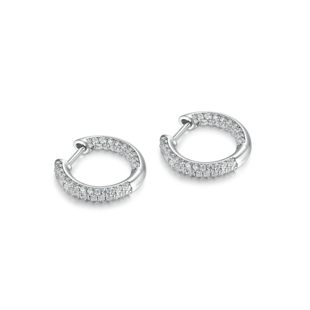 Amaia är en trippel glitter creolerna med tre rader av diamanter på framsidan och även på insidan av örhänget. På dessa vackra creoler sitter diamanterna infattade med minimal avstånd mellan varje diamant för att ge ett oslagbart skimmer.