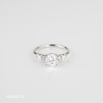På bilden presenteras Ambra med en 0.75 carat briljant slipad center diamant.