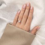På bilden presenteras Amina med en 0.75 carat briljant slipad diamant.
