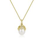 Aria är ett unikt och annorlunda pärlhalsband med vackra mjuka mönster detaljer av guld och diamanter som omfamnar pärlan.