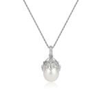 Aria är ett unikt och annorlunda pärlhalsband med vackra mjuka mönster detaljer av guld och diamanter som omfamnar pärlan.