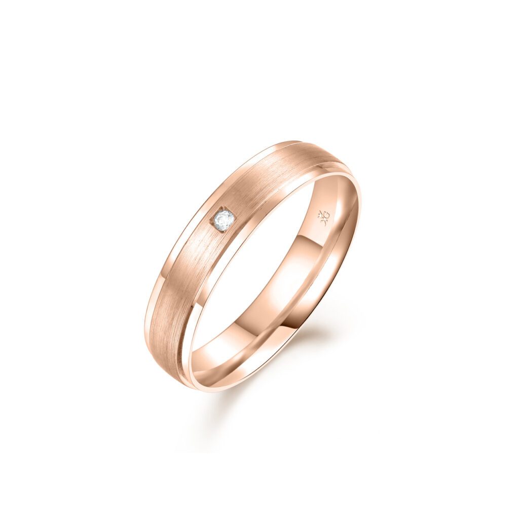 Denna ring är infattad med 1 diamant totalt 0,01 carat och har en höjd på 1,2 millimeter samt en bredd på 5 millimeter.
