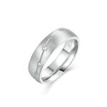 Denna ring är infattad med 5 diamanter totalt 0,048 carat och har en höjd på 2 millimeter samt en bredd på 6 millimeter.
