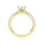 En elegant och tidlös sidostensring infattad i sex nätta klor. Den avsmalnande ringskenan pryds av diamanter som börjar smått vid kronan och gradvis blir större mot mitten av skenan, vilket framhäver centerdiamanten på ett mjukt sätt. En tidlös favorit!