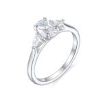 På bilden presenteras Ellery med en 1.00 carat oval slipad diamant och 2 x 0.15 päron slipade diamanter.