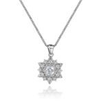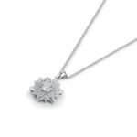 Elsie är en blandning av halo och carmosé diamanthalsband med fyra klor som omfamnar diamanten.