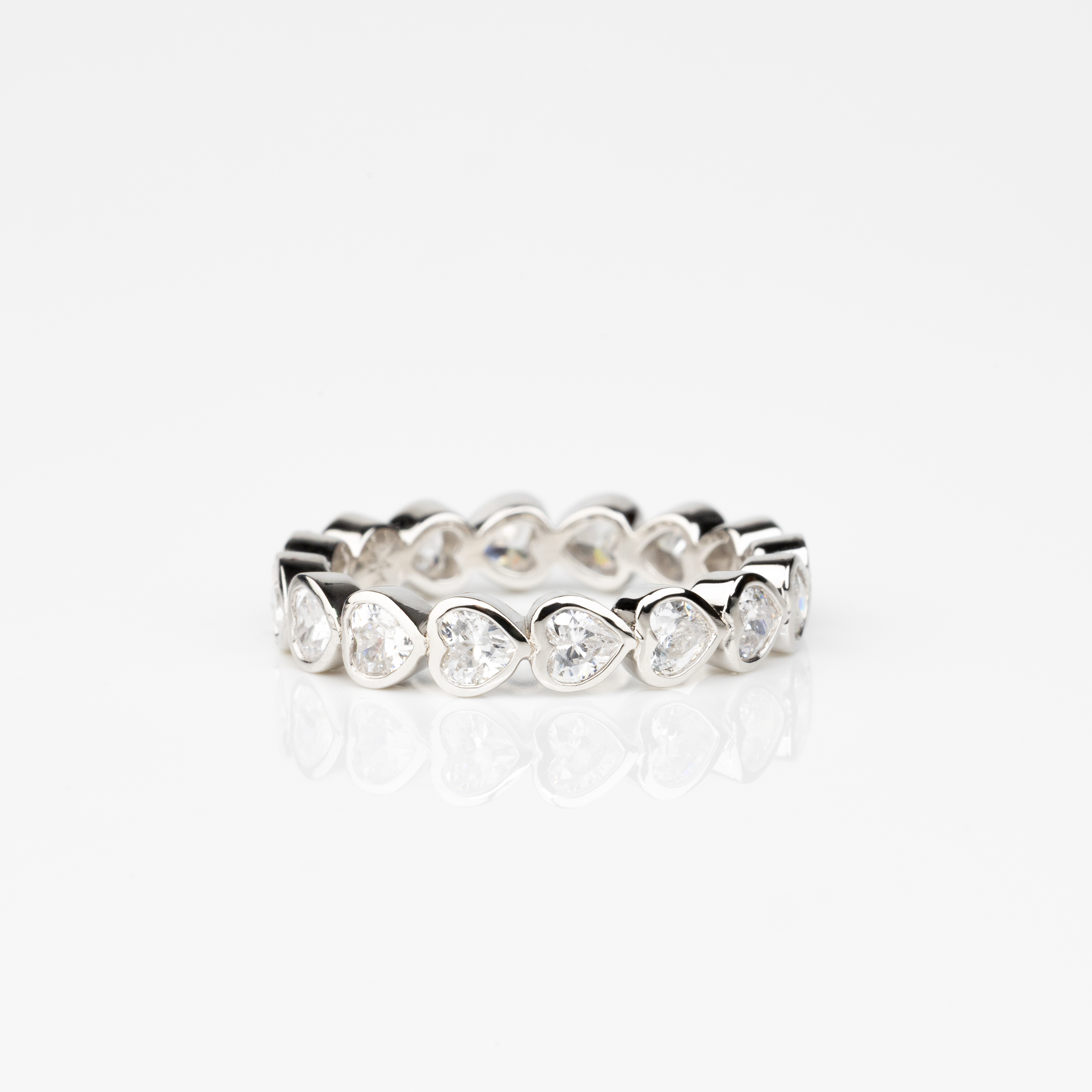 Embrace är en tidlös och elegant alliansring med hjärtformade diamanter i bezelinfattning i en east-west stil. Embrace fungerar lika bra som vigselring som att bära som ett personligt smycke och är ett val som håller sin skönhet över tid. Ett fint alternativ för dig som vill ha något unikt men fortfarande stilrent.