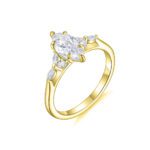 På bilden presenteras Hailey med en 1.00 carat marquise slipad center diamant.