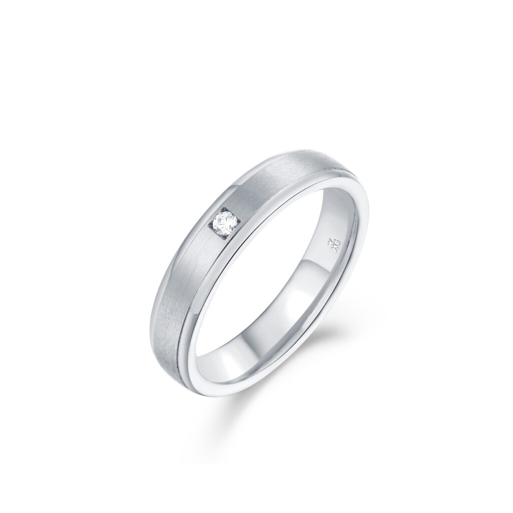 Hazel har en halvrund profil med en borstad yta i mitten, medan sidorna är blanka. Hazel pryds av en diamant i riven fattning. Med sin tjocklek på 2,3 mm får den en stabil känsla med lite extra tyngd och närvaro.