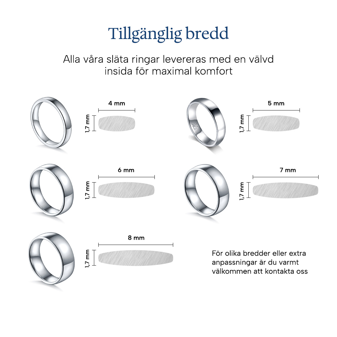 Våra släta ringar har en standard höjd på 1.7 mm men går att anpassa efter önskemål.