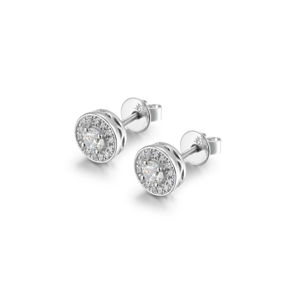 Kimber är halo örhängen med en fyra som omfamnar diamanten. Klassiska och stilrena örhängen som aldrig försvinner ur tiden. Dessa klassiker är perfekt att ge bort som en present eller morgongåva eller kombinera detta till ett set genom att matcha med någon av våra halo ringar och halsband.