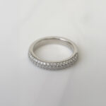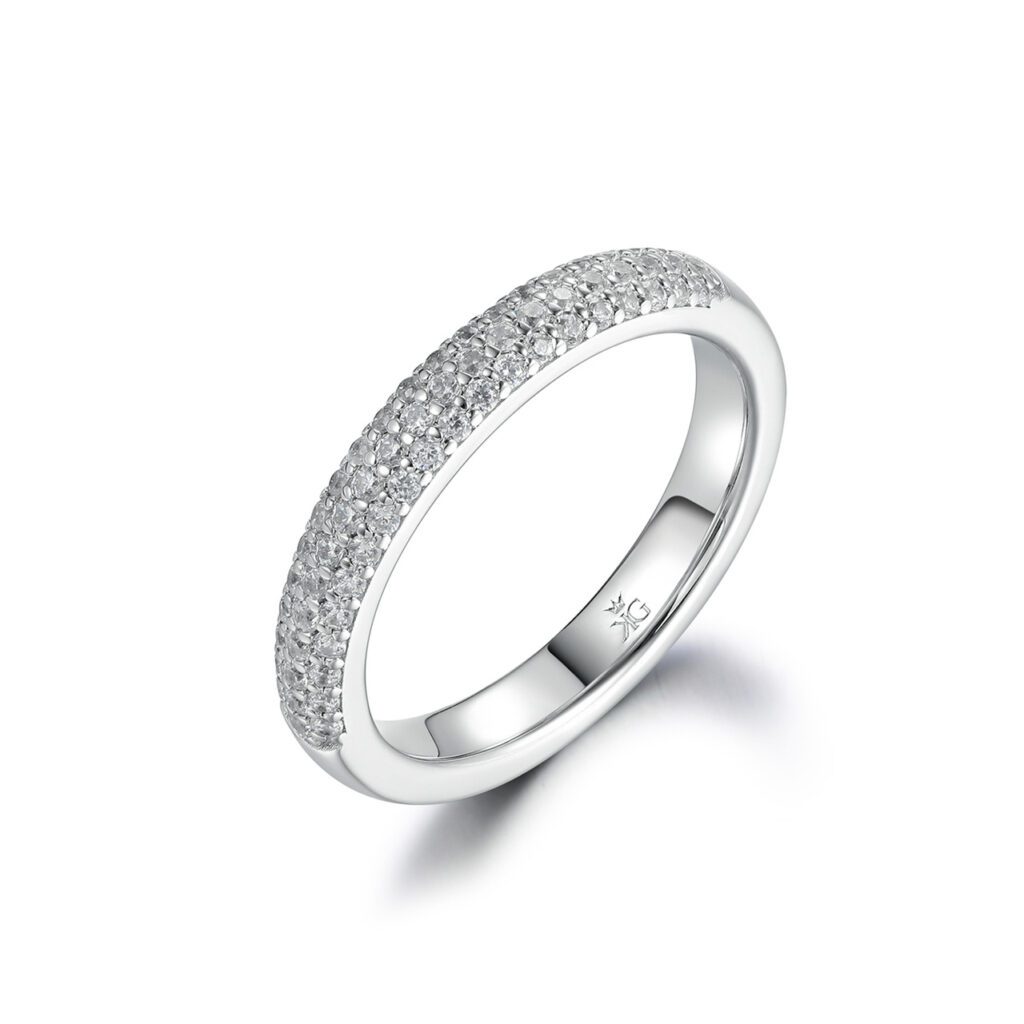 När man tittar på Madelyn uppifrån ser man enbart skimmer av diamanter. Tre rader av diamanter utan någon kant gör denna ring en fröjd för ögat att åskåda. Kombinera gärna Madelyn med en valfri ring – oavsett blir det vackert!