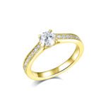 Mallorey är en vacker och tidlös sidostensring med fyra klor som elegant omfamnar centerdiamanten. Den klassiska katedralskenan är infattad i fadenfattning med 22 briljantslipade diamanter, vilket ger ringen ett stilrent och gnistrande uttryck. Mallorey passar perfekt för dig som söker en ring med klassisk design och varaktig elegans.