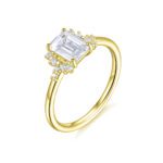 På bilden presenteras Oriana med en 1.00 carat radiant slipad center diamant.