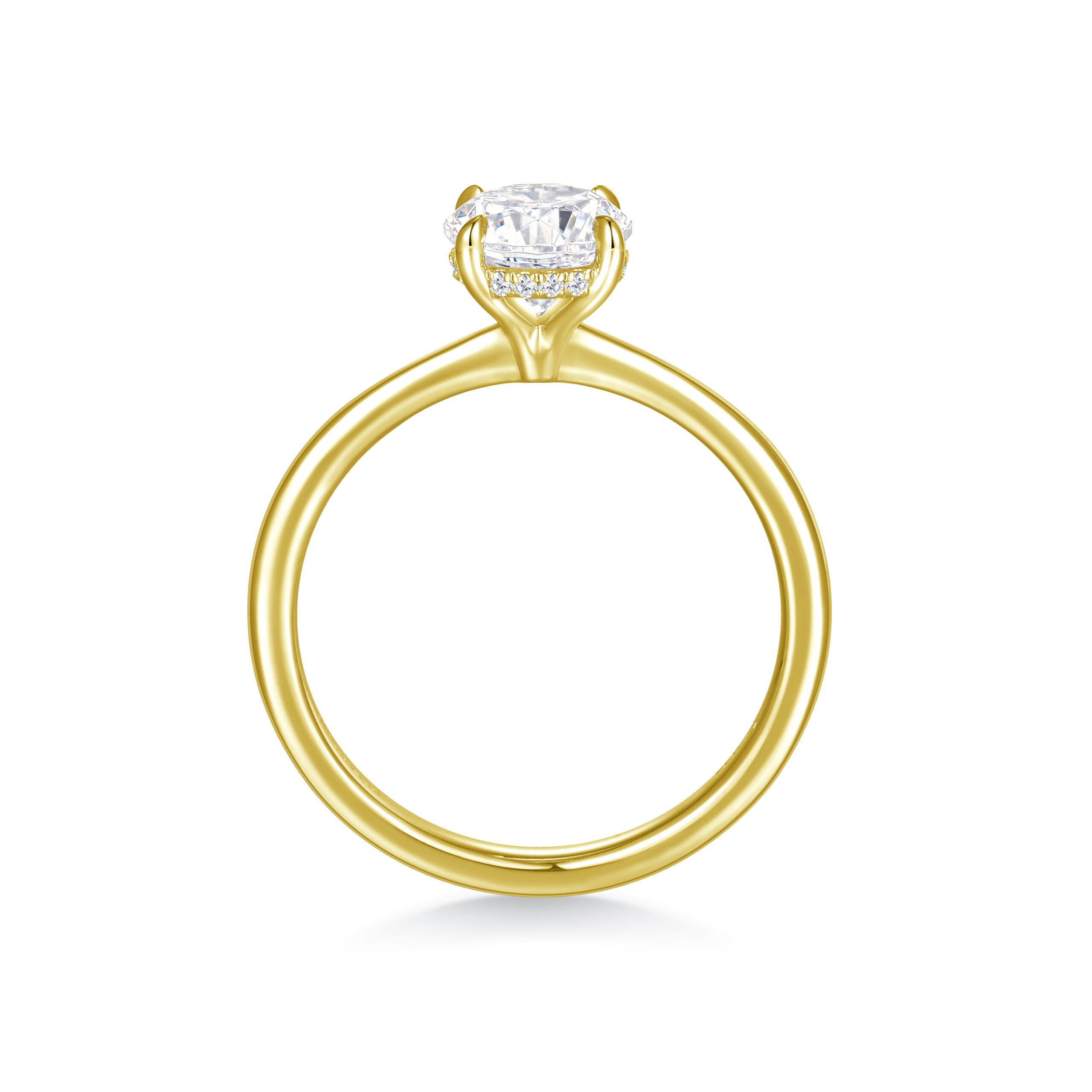 Selina är en solitärring med en elegant och tidlös design som framhäver centerdiamanten. Den mjuka formen och den avsmalnande skenan lyfter fram stenen på ett vackert sätt, medan den dolda halon tillför extra lyster.
