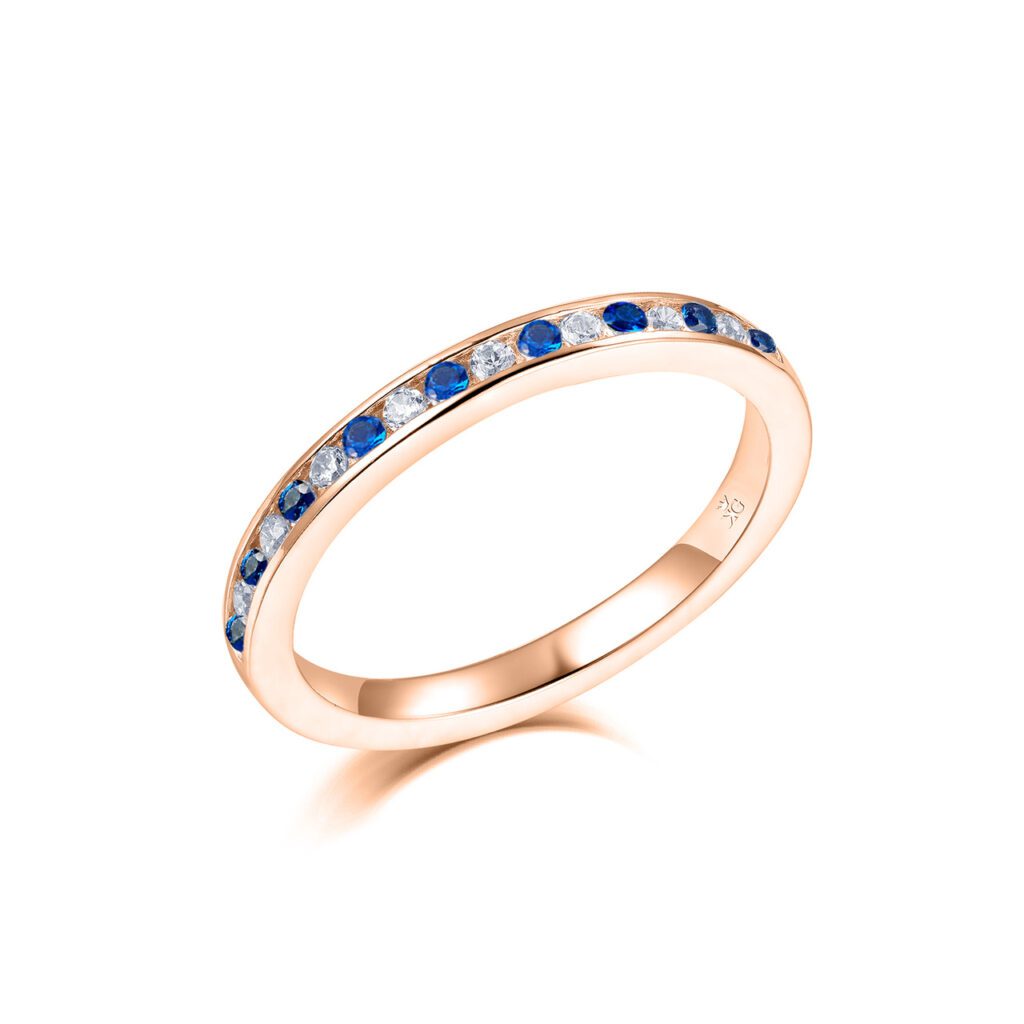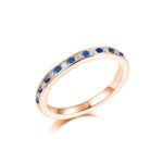 Vega 2.5 mm: Halvallians ~0.39 Carat (13 safirer/diamanter ~0.03 Carat styck) / Helallians ~0.90 Carat (30 safirer/diamanter ~0.03 Carat styck). Ringens djup är 1.8 mm.