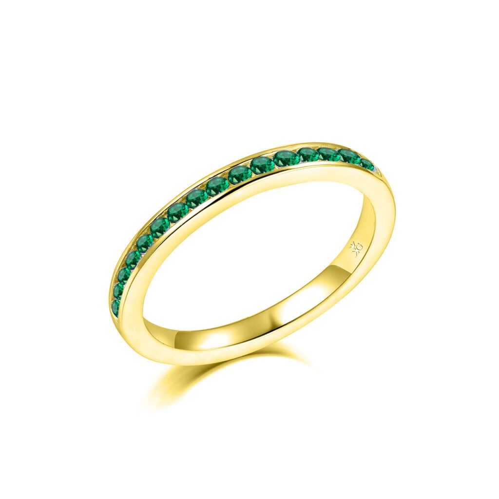 Vega är en otroligt vacker och tidlös alliansring i vår kollektion, ett klassiskt utförande med kanalinfattning. Kanalinfattningen bidrar till att smaragderna sitter tätare ihop då smaragderna inte omsluts av klor utan det är själva kanal väggen som håller i smaragderna. Det resulterar även i mer lyster och ger illusionen av att smaragderna ser större ut.