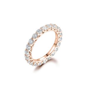 Alliansringen i 18k roseguld är en klassisk symbol för evig kärlek. Med briljantslipade diamanter infattade längs skenan får ringen en oemotståndlig glans som förstärker dess romantiska uttryck. Den mjuka roseguldstonen ger en varm och modern känsla.