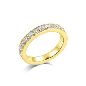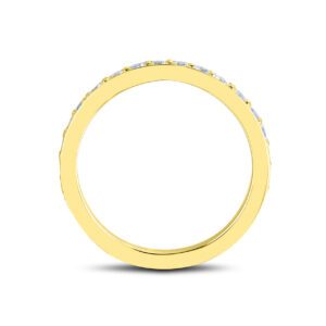 En alliansring i 18K gulguld är ett smycke som representerar evighet och samhörighet. De briljanta diamanterna längs skenan symboliserar viktiga ögonblick och gemensamma steg i livet. Den varma tonen i 18K guld ger ringen en klassisk och elegant känsla som aldrig går ur tiden.