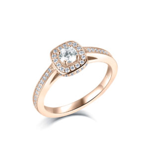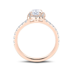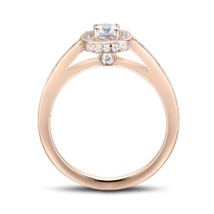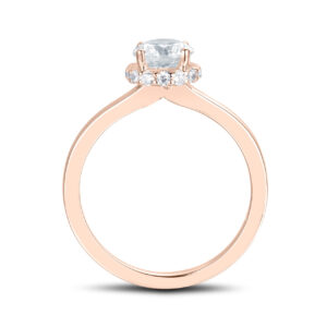 En haloring i 18k roseguld är ett romantiskt och tidlöst val för den som söker en förlovningsring med extra lyster. Diamanterna omger mittstenen i en gnistrande cirkel som framhäver dess briljans och skapar en exklusiv känsla.