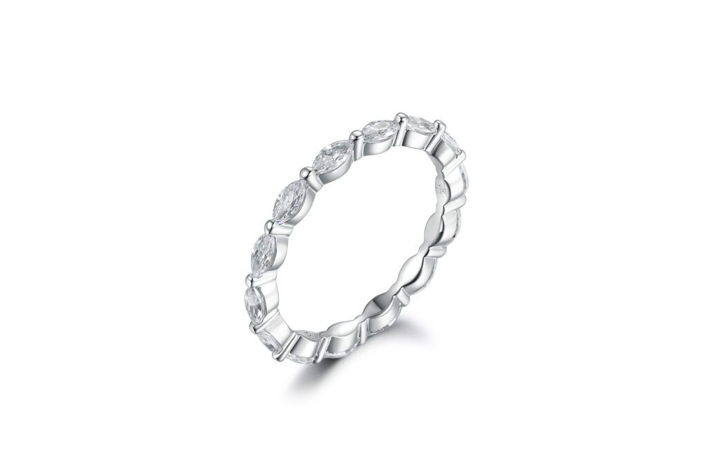 Adalaine är en alliansring med Marquise slipade diamanter även kallade navettslipade. Mellan varje diamant är det en stabil och säker klo som håller i varje sten. Ovanifrån så ser man bara fint utplacerade diamanter som glittrar fint utan att se för mycket metall runt diamanterna!